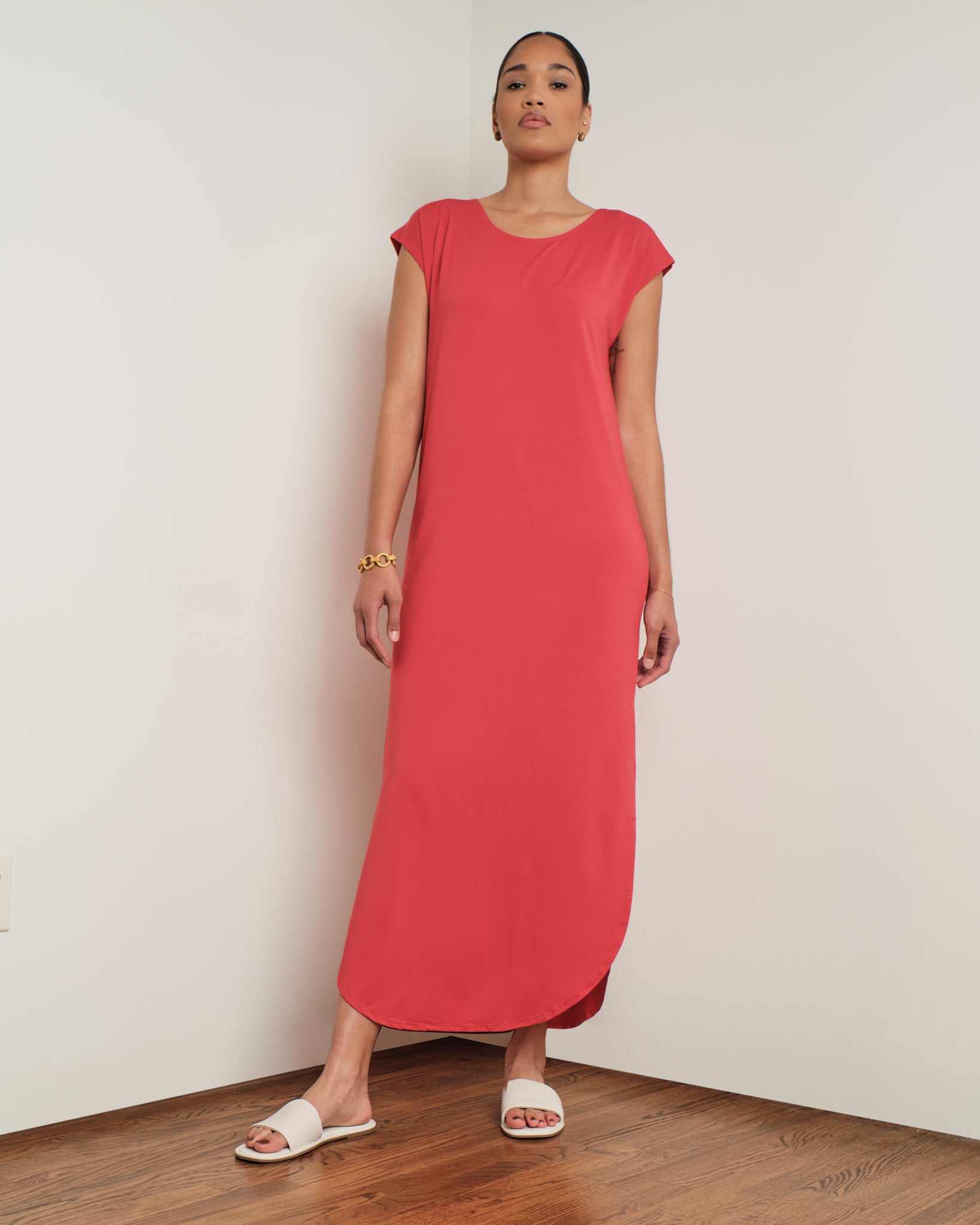 Made from bamboo-derived modal jersey fabric with just a touch of lycra, the Long Easy Dress is soft, stretchy, never shrinks, never pills, and never fades. It's the closet staple you need for year-round cool-girl style.